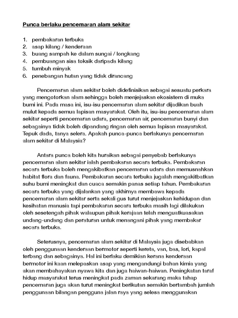 Karangan Fakta Punca Punca Berlakunya Pencemaran Alam Pdf